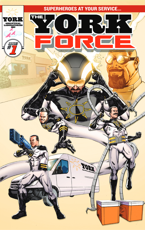 YORK FORCE #1 "No one beats YORK ANALYTICAL’s customer service, most notably their superhero field service squad known as the YORK FORCE." The guys at York Analytical Laboratories decided to have some fun while promoting their bussiness so they came up with a comic book showing their fight against evil competitor Acme Lab. Cover and interior art by Andres Barrero , colors by Wil Quintana. Read the full issue here: The York Force #1