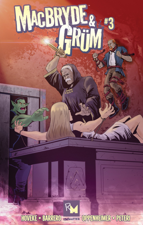 MACBRYDE & GRÜM #3 "In this pulse-pounding third installment, MacBryde and Grum delve into the shadowy maze of Loughlin White’s devious scheme. Amid ancient rites and chasms torn between realms, our heroes confront sacrifices that could alter the very fabric of existence and return Grum to his home planet. Who shall persevere, and who shall linger on the terrestrial realm we call Earth?" Paranormal comic written by Steven Hoveke. Interior art by Andres Barrero. Buy it here: MACBRYDE & GRÜM #3